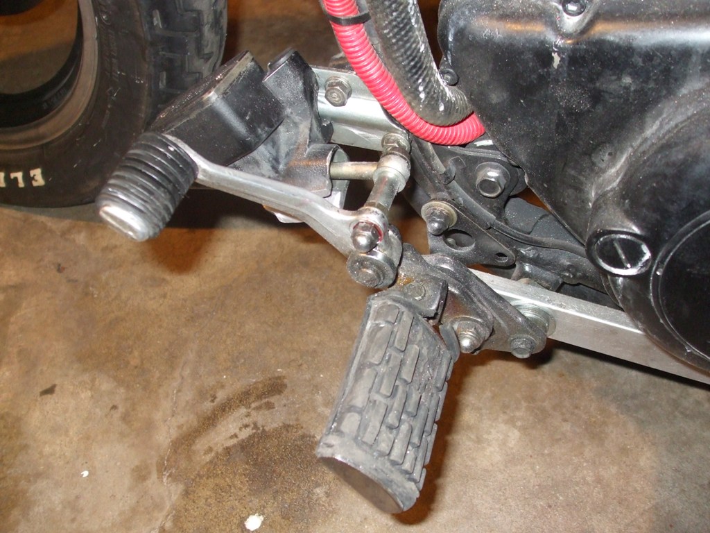 Well I have abandoned the jockey shift and the the chain linkage on the brake even though they looked cool. Also, added the windshield and made the dice shift knob into my gas cap.