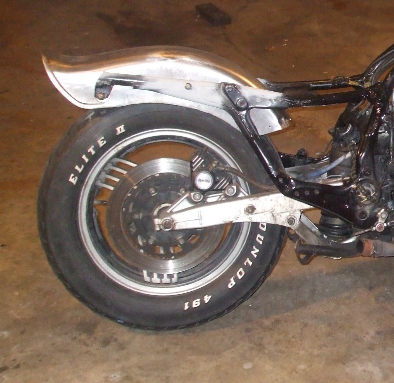 More chopping on the front fender. Also replaced the garage door chain with chain gang type on ther rear brake pedal.