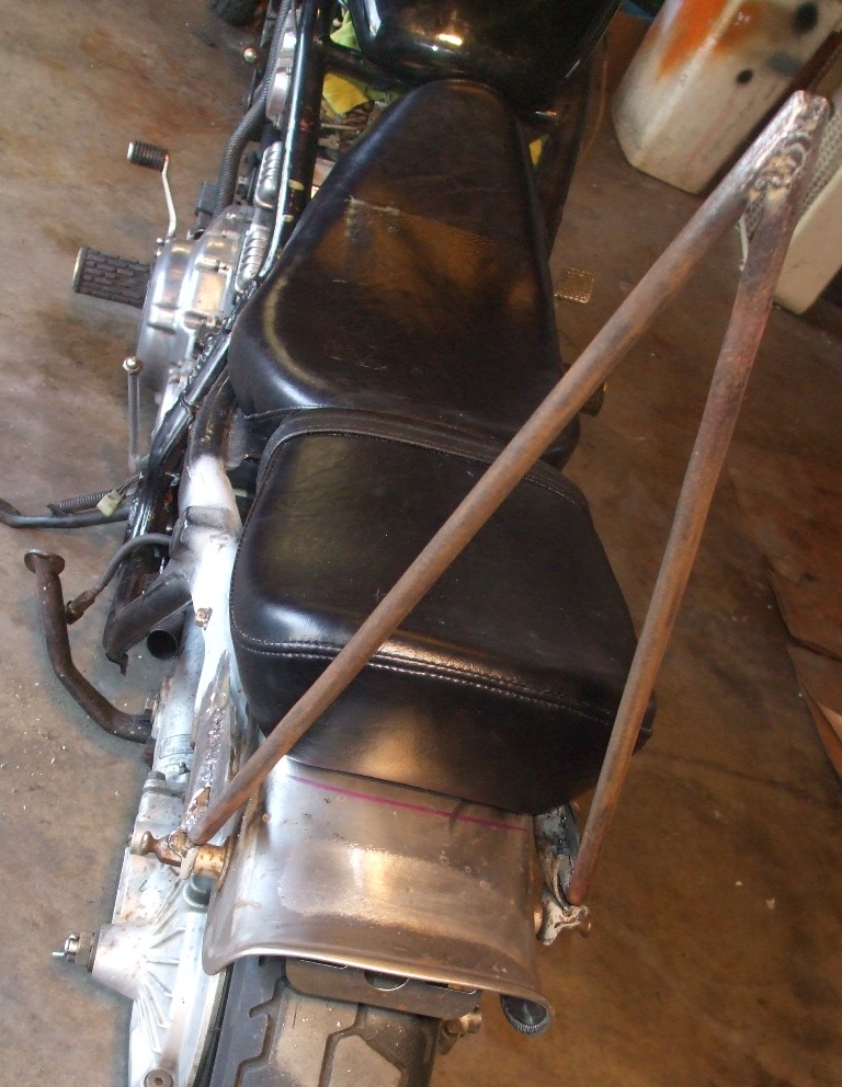 The Freebie Sissy Bar. I made this from some donated steel, here we have the mock up and measure stage.