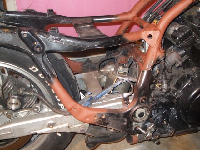 After reshaping the V Star seat down to size and fitting it to the bike, I have decided to stay with the Intruder gas tank. I was considering cutting the double backbone out and welding