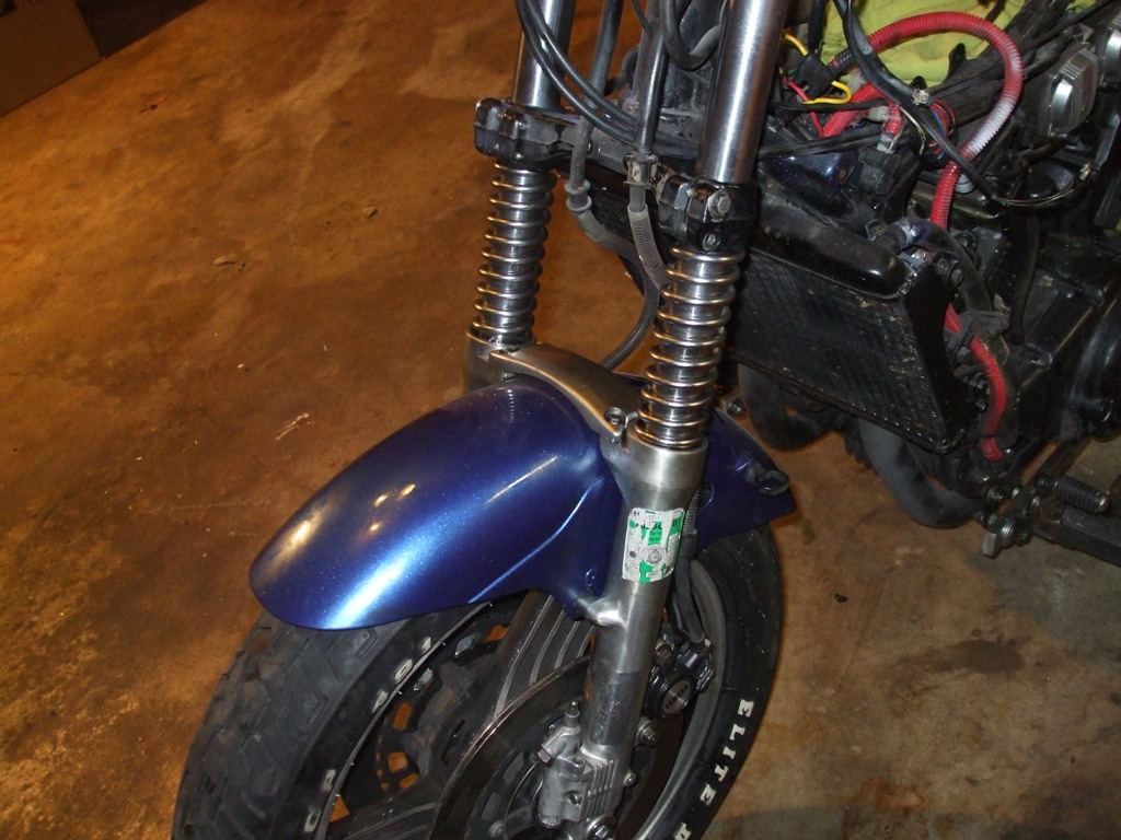 Bought a set of Honda 550 rear shocks, hacked em up and made these cool looking fork springs